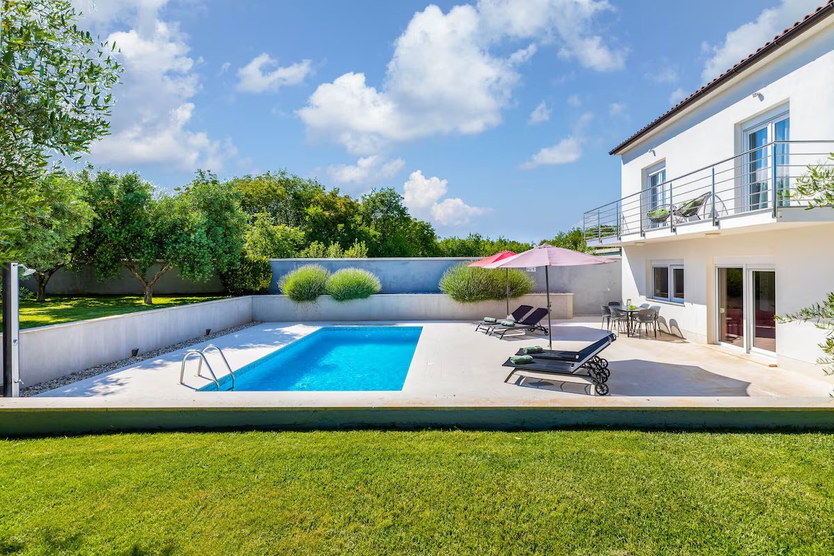 Beautiful villa with heated pool, 100m from the sea, WiFi, grill , Valbandon 3 km from Pula Amphitheatre: Beautiful, child-friendly detached house on 2 levels. The villa is only 100 m from the sea, 200 m from the beach. Private: property 900 m2 (fenced), swimming pool (7 x 3.5 m, depth 135 cm, 01.04.-31.10.). The pool can be heated (extra charge, payable on site: 125 EUR / week). Outdoor shower, barbecue. In the house: Internet access, free WiFi, central heating, washing machine, parking near the house on site. Supermarket 500 m, restaurant 200 m.